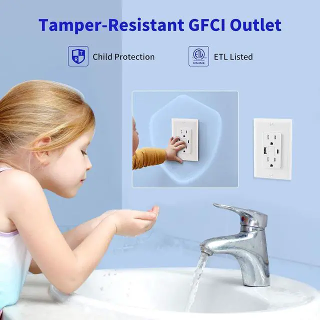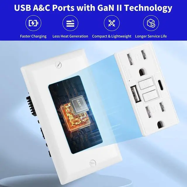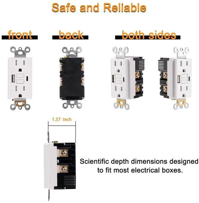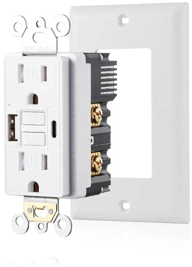 With USB Type A&CThe tamper-resistant 15 Amp GFCI power outlet with built-in USB type A&C port and 4.8A charging power gives you a quick and convenient charging port for your home.