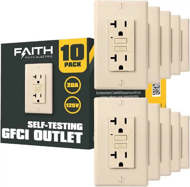 10 pack Each pack includes (1) 20Amp ivory GFCI receptacle (1) 4 59" x 2 76" ivory wall plate (2) screws installation manual stickers US-based customer support