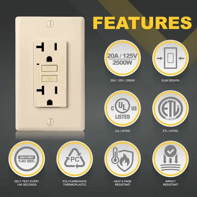 Auto-Test 20 Amp GFCI Outlet To ensure continuous protection against ground faults the GFCI outlet conducts automatic self-tests Install in your bathroom kitchen garage and basement