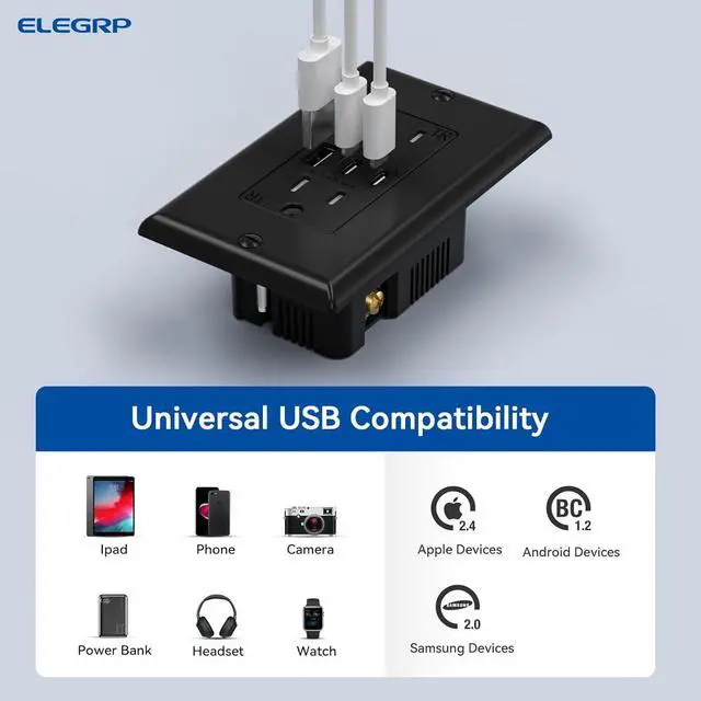 Universal Compatibility Compatible with all kinds of USB devices with multiple charging protocols including Apple Protocols, Samsung Protocols and Standard BC 1.2.