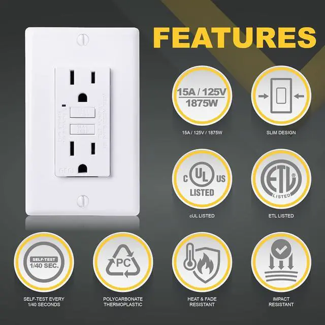 GFCI Outlets: Provides protection from electrical shocks that might occur from faulty appliances in damp locations. Device detects and trips on ground faults within 1/40 of a second Auto-Test 20