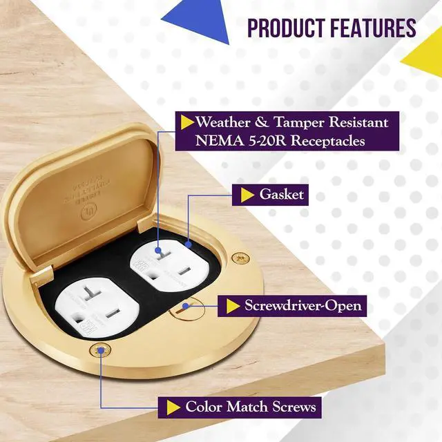 Provides a floor mounted outlet for commercial or residential locations. Junction box required for mounting (not included)