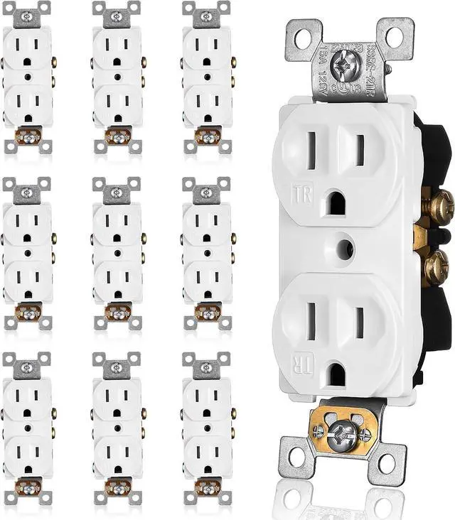 : 10 Pack of white outlets. Electrical rating 15A/125V/5-15R/2-Pole/3-Wire. Meets or exceeds 2017 National Electric Code (NEC) Article 406.12 standards for tamper resistant outlets. UL and cUL Listed.