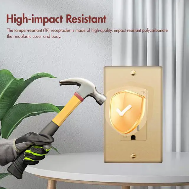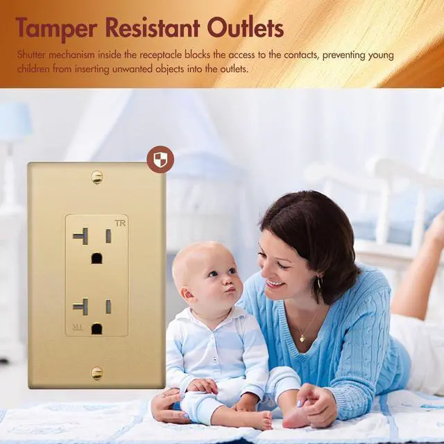 Tamper Resistant Outlet - Built- In protective shutter mechanism designed to prevent the insertion of foreign objects into the receptacle contact openings. For families, you don' t have to worry about the risk of electric shock with this wall socket.
