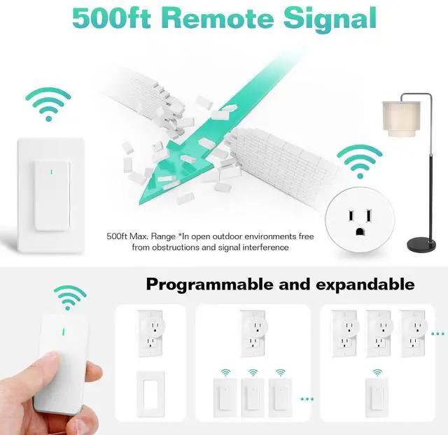 Long-Range & Signal Stability: Control appliances from anywhere with a 160ft (indoor) & up to 500ft (outdoor) RF range, bypassing walls and interference. WiFi-free operation ensures reliability. Ideal for large homes or multi-room setups. Never worry about signal drops.
