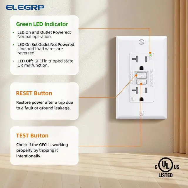 UL and FCC CertifiedELEGRP GFCI outlets are rigorously tested to meet or exceed UL943 & UL498 standards for safety and reliability. With both UL and FCC certifications, you can trust this outlet to provide dependable performance while adhering to strict regulatory requirements.