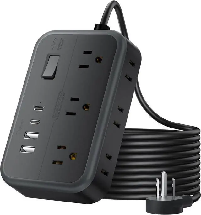 10-IN-1 Desktop USB Power StripThe AC outlets of the extension cord with multiple outlets are separated enough to fit big transform plugs without blocking each other(preferably < 1.6 wide). The extension cord with multiple outlets is designed with 2 sides, which adds the possibility that you can get more AC outlets. NTONPOWER 25 Ft extension cord has 3 grounded outlets, 3 *2 prong outlets, 2 USB A ports, and 2 USB C ports, which can power and protect 10 devices at the same time.