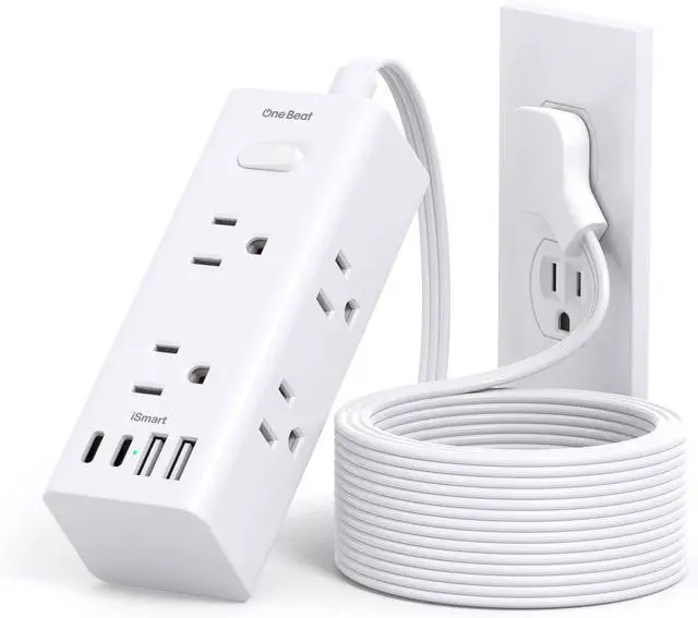 Ultra Flat Plug Power Strip & 10 Ft Flat Extension CordWith only 0.35 inch ultra thin plug and 45 degree right angle design, One Beat low profile flat wall plug is mush slimmer than traditional plugs, can close to the wall easily and hide in the back of furniture, bed or refrigerator, no waste for outlet and space. 10 ft extension cord with only 3mm thicker which is made of pure copper, which has better current carrying capacity (15A).