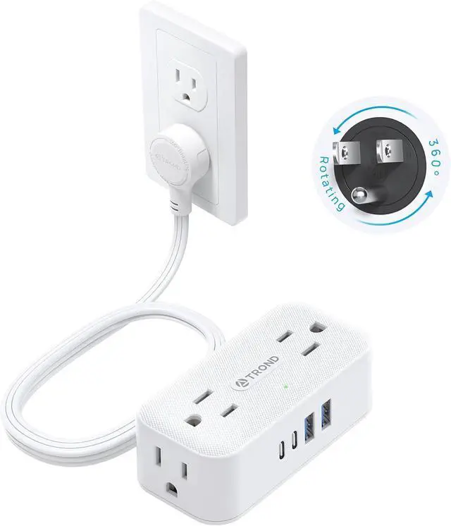 Patent No. 11901685): Design with a revolutionary 360° rotating plug that adapts to any wall outlet, combined with a wall-mountable slim profile to eliminate cord clutter - ideal for tight spaces behind furniture or dorm rooms