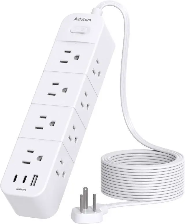 Extension Cord with Multiple Outlets - This multi plug extension cord has 3 USB ports (2 USB C) and 12 AC outlets rated 15A 1875W; 3 side design outlets are separated widely enough to fit 9 big plugs; essentials for your home, office, and college dorm room