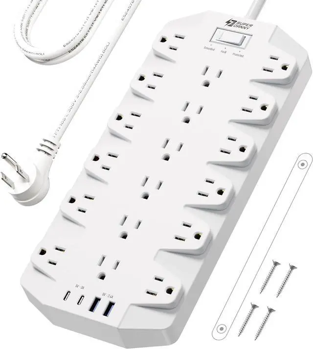 22-in-1 Power Station SUPERDANNY surge protector power strip features 18 widely-spaced grounded AC outlets, 2 USB-C ports, and 2 USB-A ports, as a multi plug outlet extender for powering your electronic equipment at one location, such as surround sound system, TV, media setup, router, etc. With a 6.5 ft UL-Recognized extension cordmore reliable and flexibleits perfect for home theaters, entertainment centers, offices, and man caves.