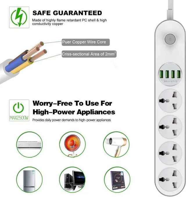 Universal Power Strip: Universal power sockets can fit for worldwide plug, such as US plug, UK plug and Europe plug etc.