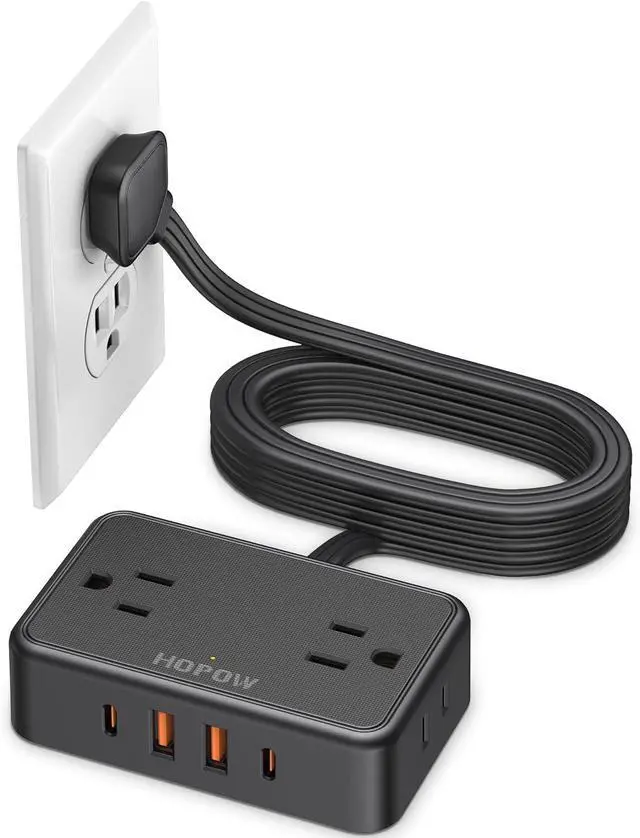 8-IN-1 Power Strip & Wide CompatibilityEquipped with 4 AC outlets and 4 USB (2 USB-C) ports, this 6 ft flat extension cord turns 1 outlet into 8, allowing you to power 8 devices simultaneously to save more time. Extension cord with multiple outlets has a wide range of compatibility, AC Outlets with 1625W max, compatible with laptop, PC, printer, TV, router, Lamp, and more. USB-C Ports with 15W max, adaptable to Phone, watch, speaker. USB-A Port with 12W max fit for Fan, power bank, and more.