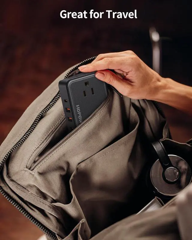 Wide Spaced Outlets & Anti-Slip FeetThe spacing between the sockets is 1.62 in, wide spaced outles sufficiently far apart that even pretty bulky plugs or adaptors can be plugged in. What' s more, 4 rubber feet on the bottom of the desktop charging station prevent slipping and can be secured in place.