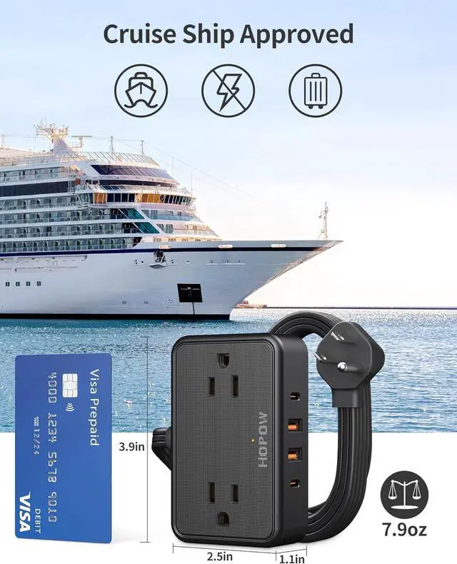 Essential Cruisel & Travel AccessoriesThe no surge protector are fully compliant with cruise ship standards, it' s the ideal cruise ship essential. In addition, this slim flat head power cord extension is very compact and portable, it can easily fit in your backpack, suitcase, handbag, it' s a must have for traveling.