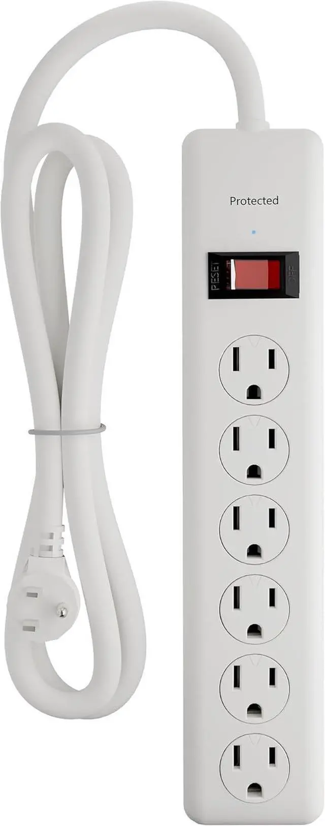 6 Outlet Power Stirp - Equipped with 6 grounded and surge-protected 3-prong outlets with manual ON/OFF button, this power strip can power up to 6 devices simultaneously. Its compact design is ideal for saving space, making it a perfect fit for homes, offices, and college dorms.