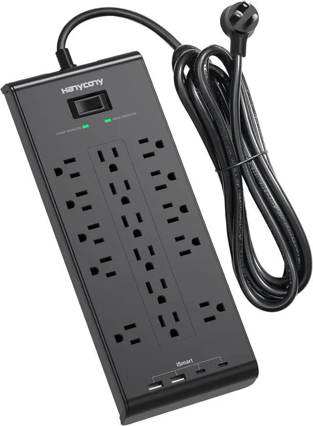 Surge Protector Power Strip with USB C Ports: 4 USB ports total 3.1 A, each USB A port features 2.4A Max output. USB C charging port features 3A MAX. Built- with smart technology, detecting charging devices and deliver optimal charging speed automatically, compatible with most USB devices.