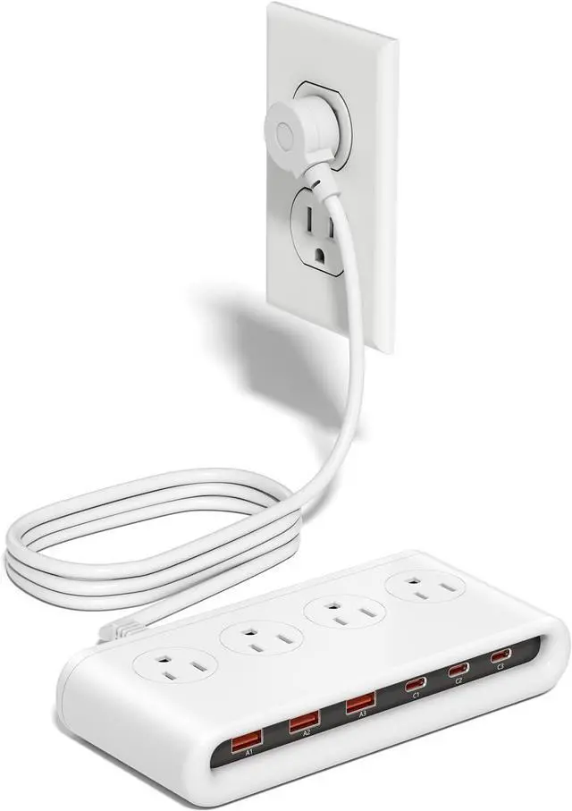 Versatile Charging Solution: This power strip with USB C features 4 AC outlets, 3 USB-C ports, and 3 USB-A ports, allowing you to charge up to 10 devices simultaneously, making it ideal for busy homes and offices