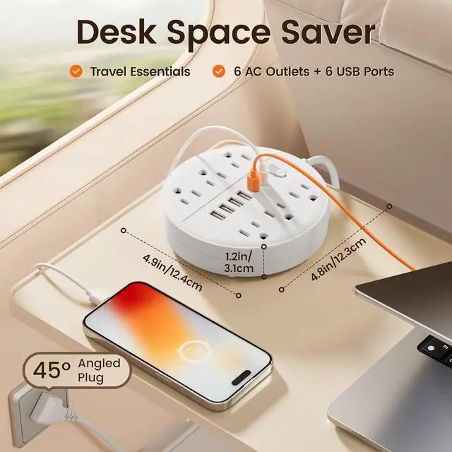 Ultra-Slim Flat Extension Cord for Tight Spaces: Designed as a multiple outlet wall plug, it slides seamlessly behind furniture with its 1.2 -inch profile. Unlike bulky traditional strips, this power strip flat plug fits snugly against walls or under sofassuitable for cramped spaces.