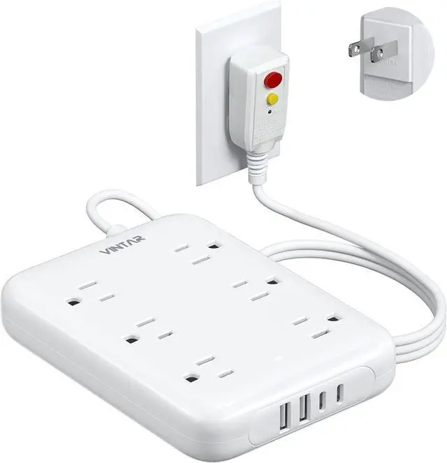 • 10 in 1 Design Charging Station: This two prong extension cord turns 1 socket into widely spacing (1.5 inch) 6 AC outlets(1625W Max), 2 USB-A and 2 USB-C, which can charge up to 10 devices at the same time. Dual USB-C ports of this 2 prong power strip can charge up to 5V/3.4A Max, dual USB-A ports can char