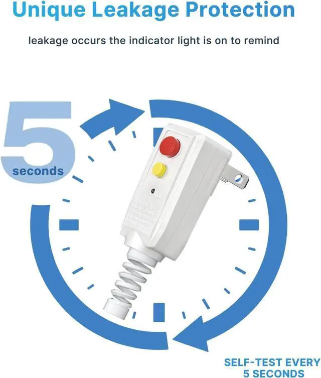 • GFCI Plug & Built-in Circuit Breaker: 2 prong GFCI adapter plug has low power consumption and long service life. Features 6kv surge protection and lightning protection. 5-second automatic detection function ensures that in the event of a leakage or attack during a thunderstorm, it will automatically disconnect the power and illuminate the indicator light, to protect you and your family