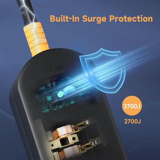 Lightning & Surge Protected The outdoor power strip weatherproof provides 2700 Joules surge protection for your divices against lightnings and spikes.
