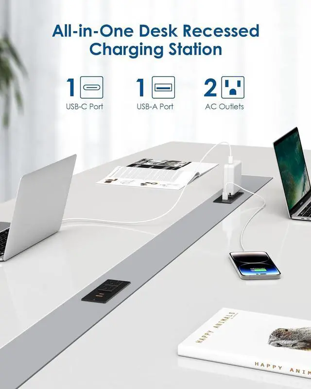 Furniture Flush Mount Charging Station: Desk outlet for L-shaped corner desk, side table, end table, or headboard, etc.