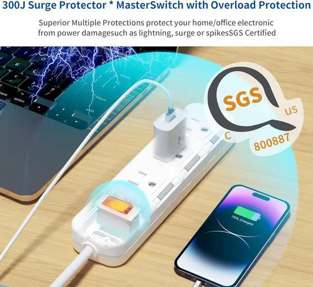 Multiple Protection300J surge protector, grounded protection, overload current protection, short circuit protection, high temperature protection, combine to provide a superior safety.
