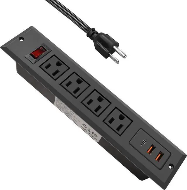 [Recessed Power Strip]--Built into the desk, cabinet, couch not only improve the space utilization but also make the desktop clean, no more extra messy power cord.