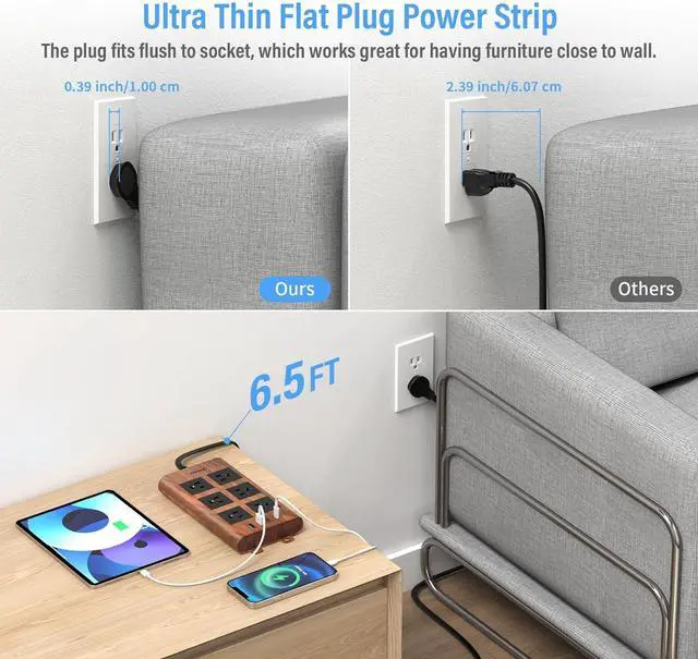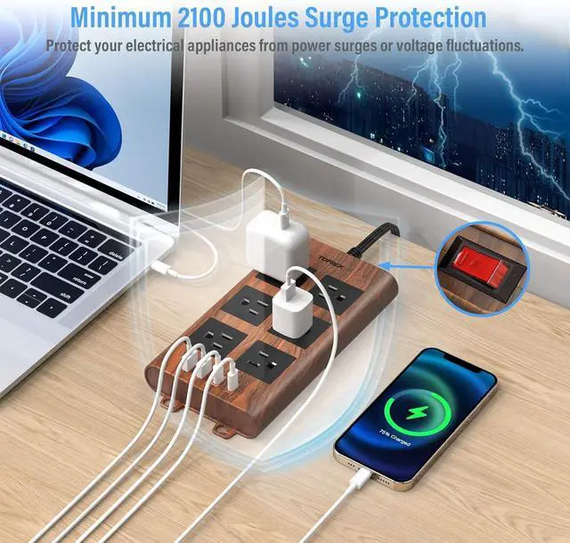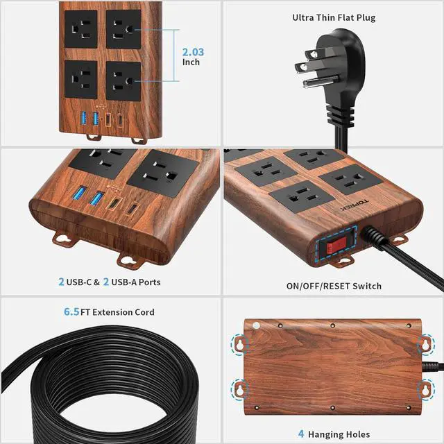 [STYLISH WOOD FINISH] - If you need a surge protector that sits on your desk, floor, and want something stylish, this is the right product! Designed to complement your decor, this power strip features a sleek wood finish that blends effortlessly with wooden furniture, floors, or desks. Its not just functionalits a stylish addition to any space.