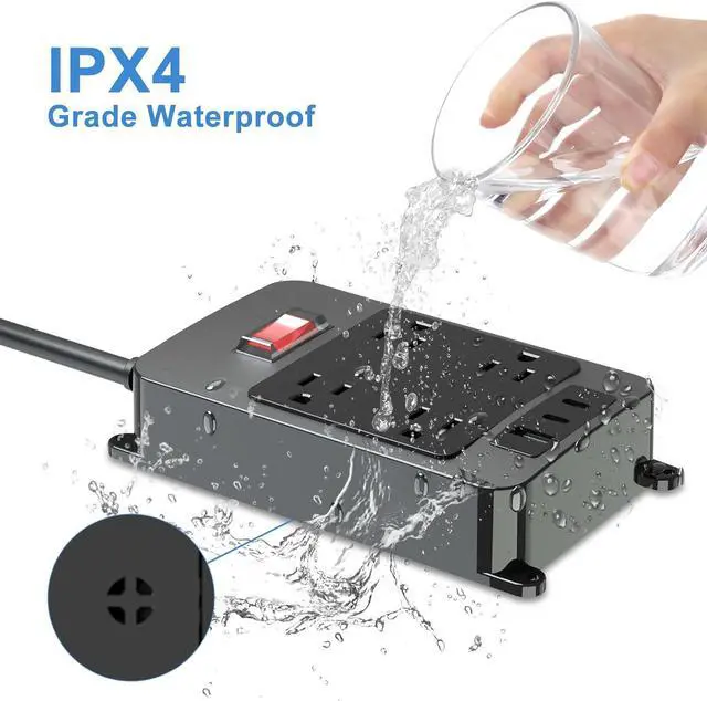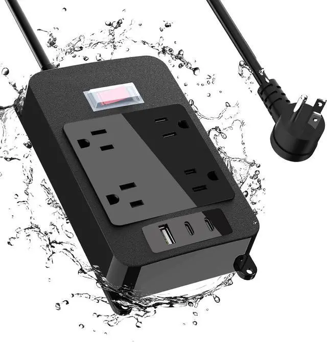 Waterproof Patented Design- With IPX4-rated waterproof and electric shockproof, the power strip with usb c can be used safely indoors and outdoors in Rain and thunder, which can prevent short circuits/electric shock, and other safety issues caused by water splash or lightning.