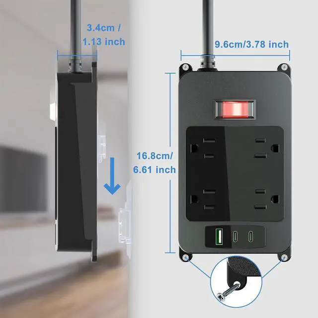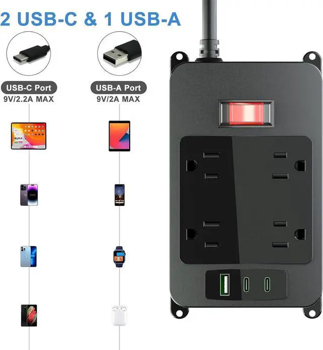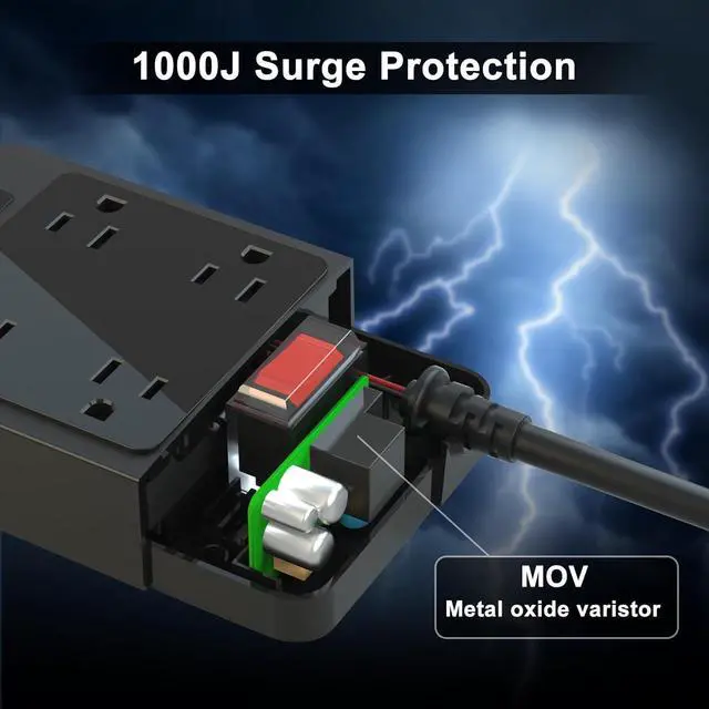 Surge Protector- 1000 joules MOV has over-current and over-heat protection function, and will make this usb c power strip automatically disconnect and automatically recover the dual functions, which can protect your devices against lightning strikes and sudden power surges.