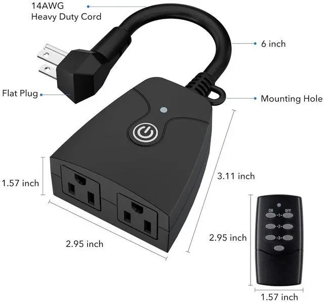 Simple convenience: use the remote or the outlets themselves to turn your appliances on and off. Great with almost any electronic device, including lights, air conditioners, heaters, audio sound systems, holiday decorations, and charging devices. The 2 outlets work simultaneously together, not independently of one another. The remote control controls both outlets at once, not independently of one another.