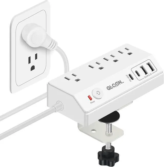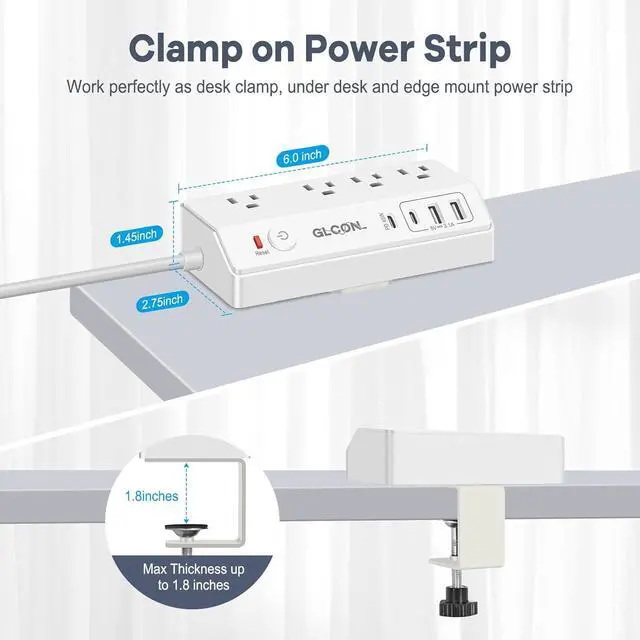 Versatile Clamp Power Strip - This desktop power strip with clamp for working as a desk clamp, desk edge mount or under desk power strip. And the clamp can be easily removed to use the power strip only