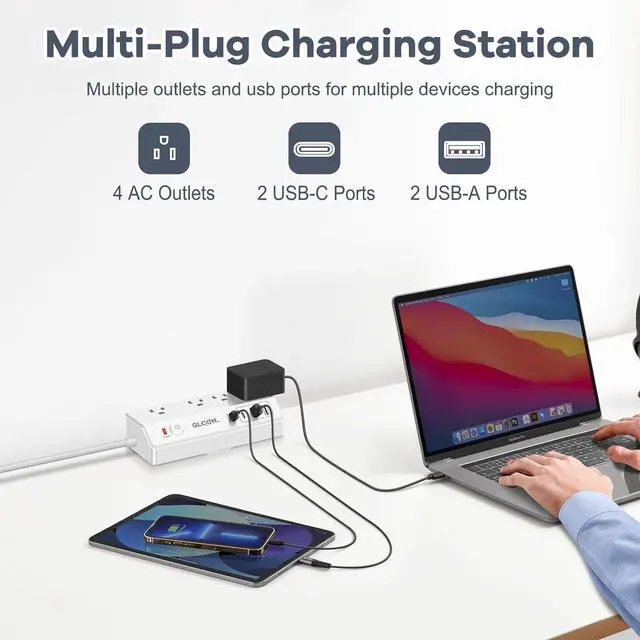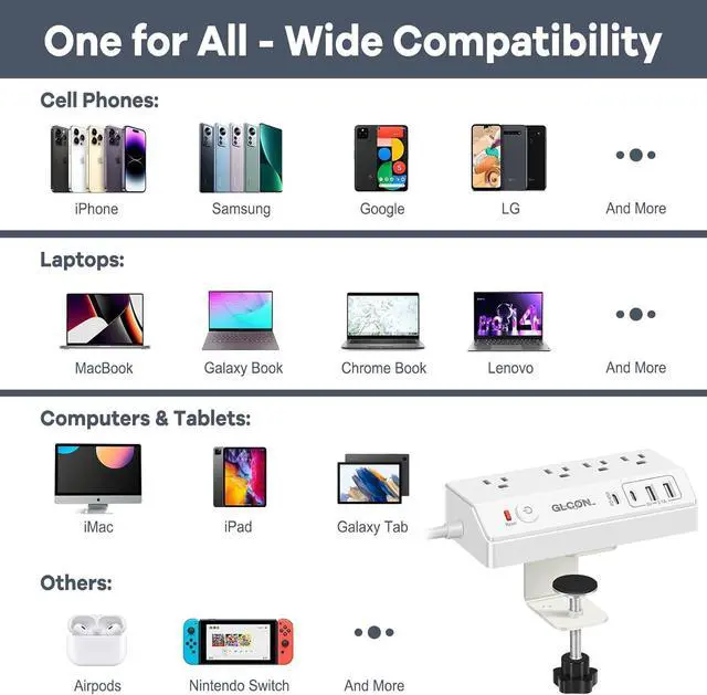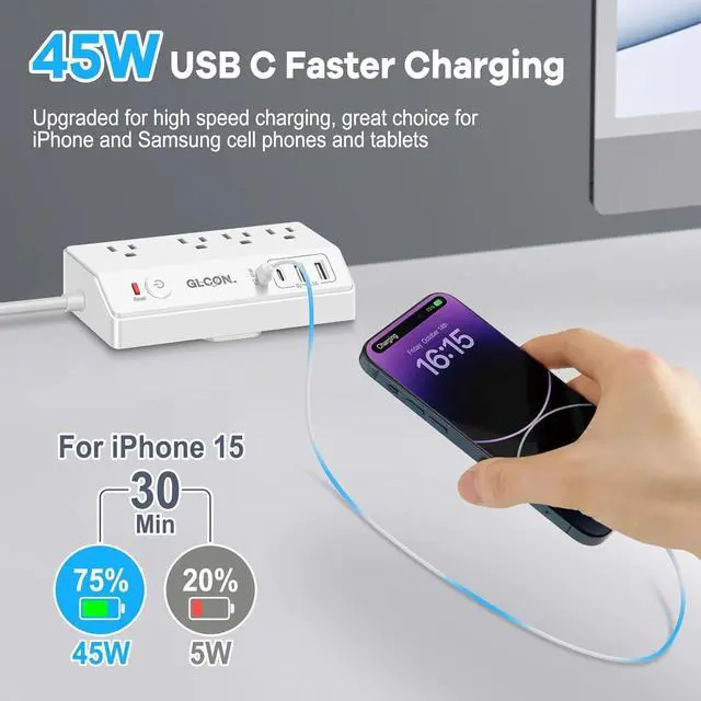 Advanced Safety and Protection - This desktop power strip is made of top-rated ABS and PC, meet high-level charging safety standard, embeded overload and surge protection for safeguard your devices