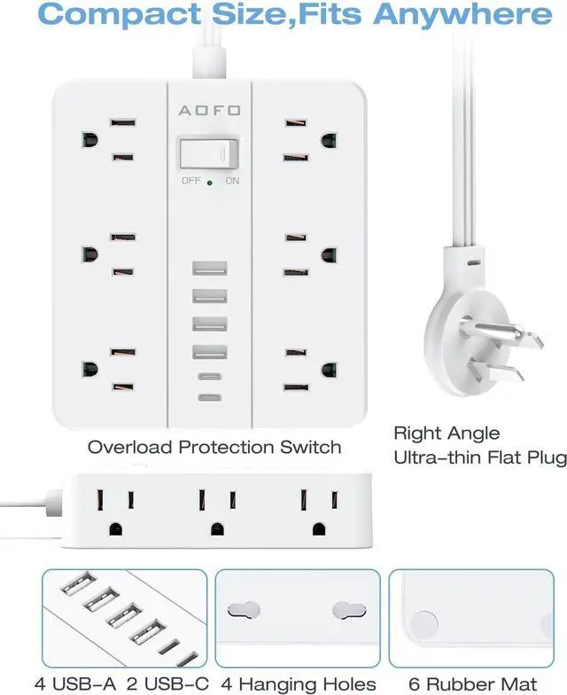 Power Strip with USB C: Featuring 4 USB-A ports (5V/ 3.4A ) and 2 USB-C ports (5V/3A), this Power Strip with USB-C delivers fast, efficient charging for your devices. Perfect for charging phones and other electronics with optimal speed thanks to smart power distribution technolog