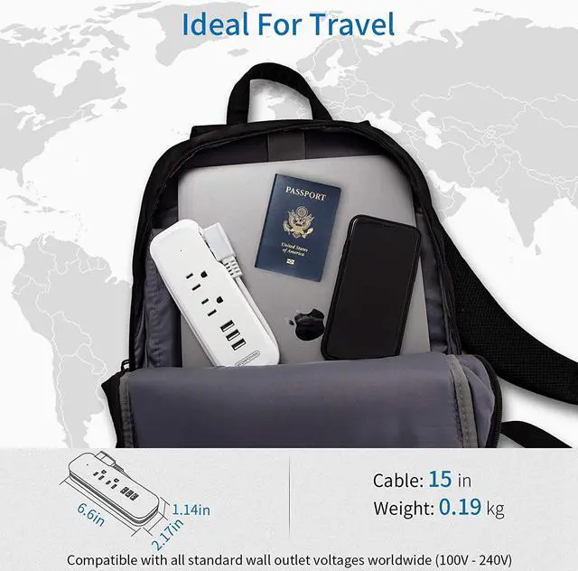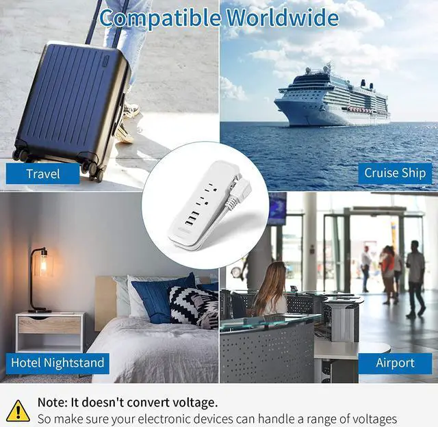 Cruise Ship & BusinessTravel Essential- The mini power strip with non surge protector, is compact size and lightweight, doesn' t take up much room in the suitcase. For those who travel frequently for work, you can always put it in your laptop bag. Absolutely a must have travel and Cruise Ship accessories, and the 4 rubber feet on the bottom keep from slipping and can be stable on the any table, save your space and make the desktop organized.