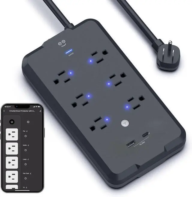 Voice Control Compatible: Works with Alexa and Google Assistant, this smart power outlet with surge protector lets you control individual smart outlets using simple voice commands for convenient, hands-free operation in your smart home setup.