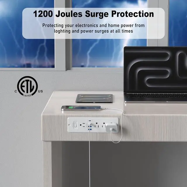 Premium Safety Features: ETL Listed certification. power output-12A 125V 60HZ 1500W; HEZI power strip Protect your desk with 1200J surge protector and switch for improved safety and energy savings. Fire-resistant PC+Aluminum shell Ideal for kitchens, office, rooms.