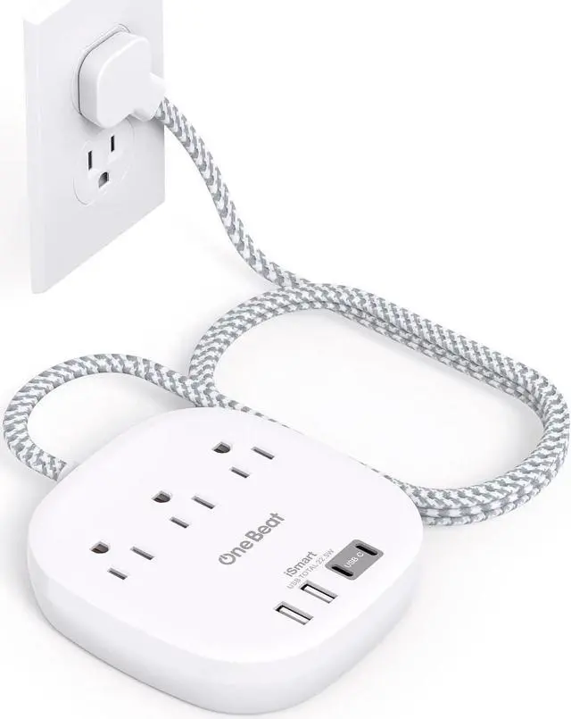 7-in-1 Desktop Power Strip with USB Ports- Flat extension cord could turn 1 sockets into 3 outlets 2 USB-A and 2 USB-C, which could charge up to 7 devices at the same time. Compatible with your cellphone, laptop, tablet, earphone or cameras without a variety of converters, keep your desktop organized, a must have desk accessories for college dorm room, home, office, bedroom, kitchen and etc.
