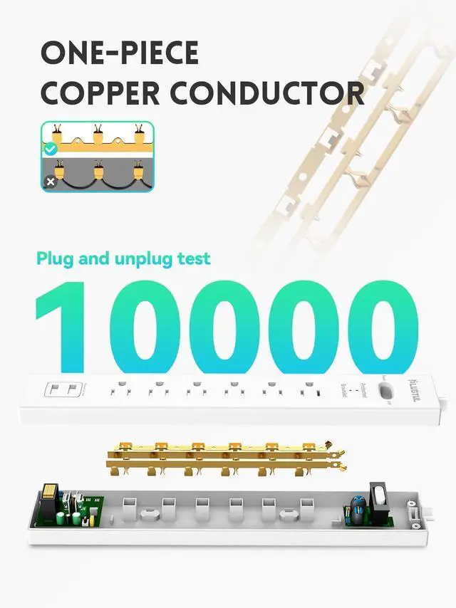 Fire-retardant Material USB Power Strip made with PC fire-retardant casing, flame class V-0 - keeping you and your devices completely safe; One-piece molding copper contacts for better conductivity and safety.