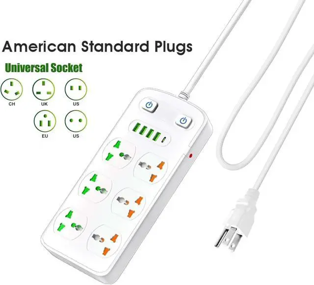 Universal Socket for European Travel and International Users: 6 Universal power socket accepts plugs from all countries including UK, US, all of Europe, China, Australian and more!