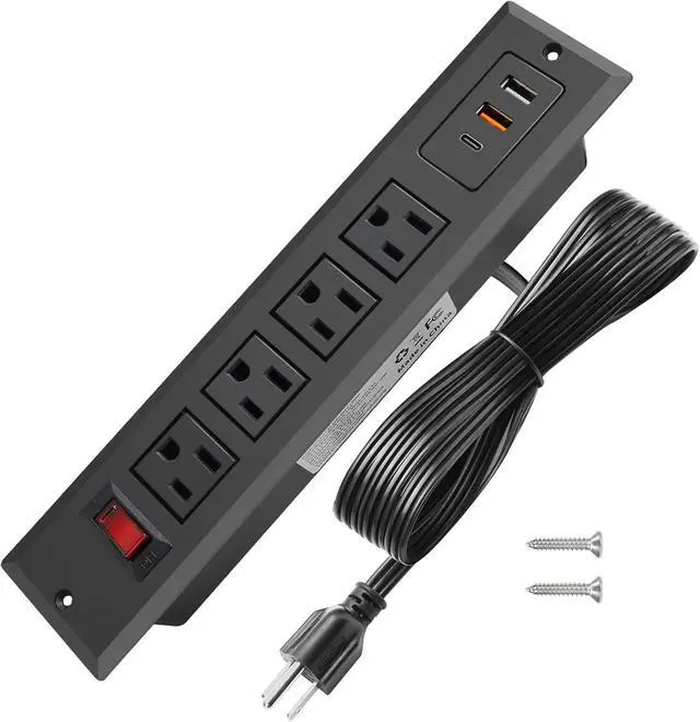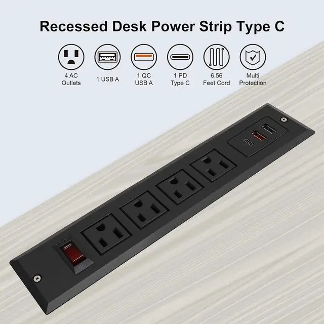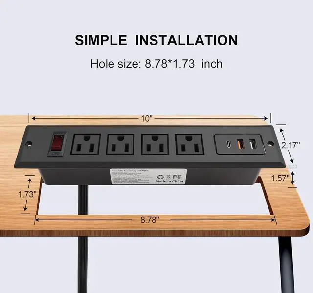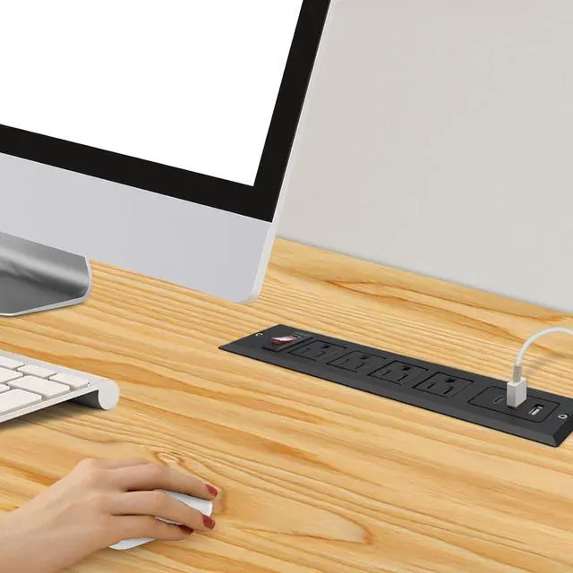 [RECESSED POWER STRIP] mounted into desk table cabinet or sofa, save your space get rid of power cord dragged and hang around. Cut a hole size 8.78 * 1.73 (L*W) on the furniture surface, insert the power strip and screw it.