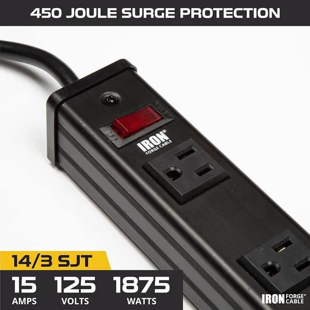 Built To Last: Featuring 14 Gauge heavy duty extension cord with 3 prong grounded plug for extra safety, this Iron Forge Cable black power strip is perfect for powering multiple devices. Great for workshops, enclosed garages, rackmount, home office, schools, industrial/telecom applications and more.