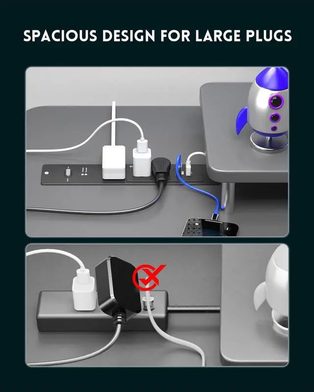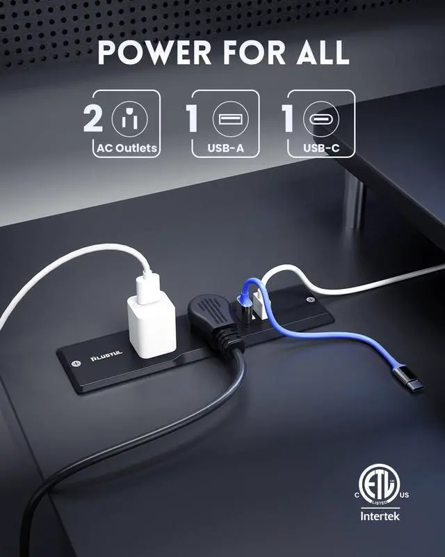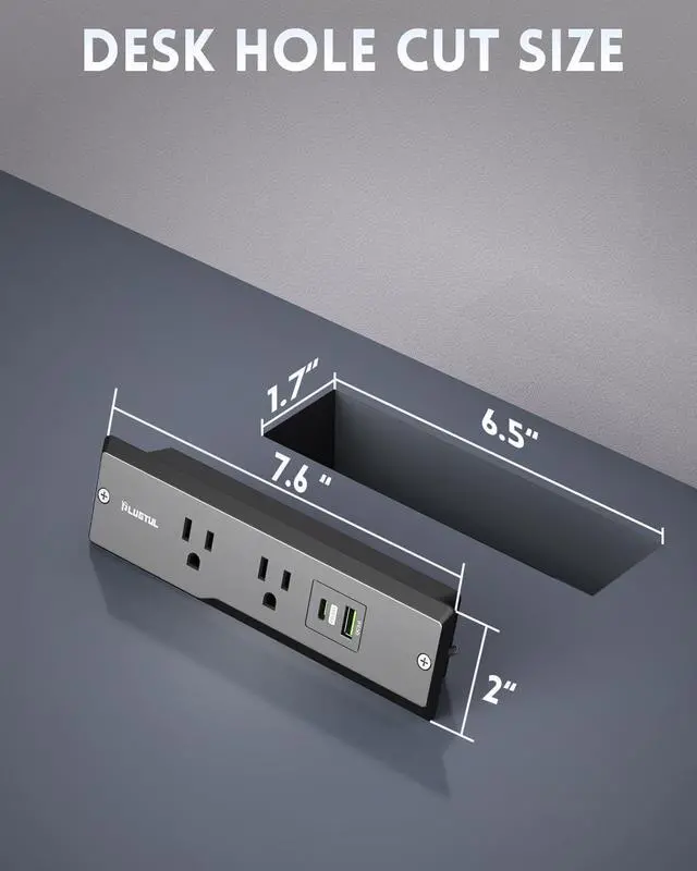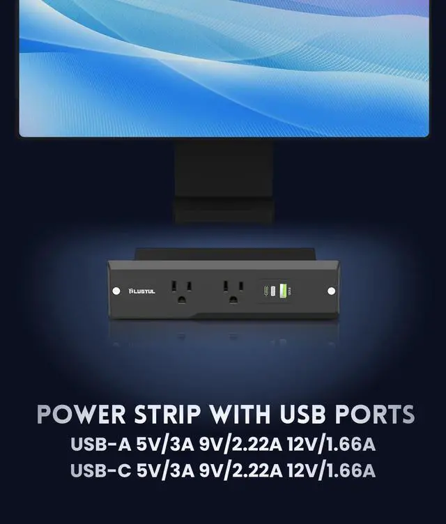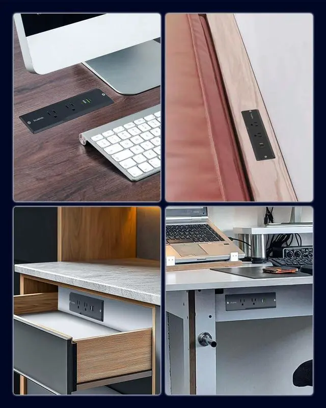 Recessed Power Strip with USB Ports Equipped with 2 AC outlets, 1 USB-C port, and 1 USB-A ports, Suitable for conference tables, sofa tables, kitchens, bedrooms and more. The rich combination of configurations is an excellent addition to dining tables, furniture or drawer outlets