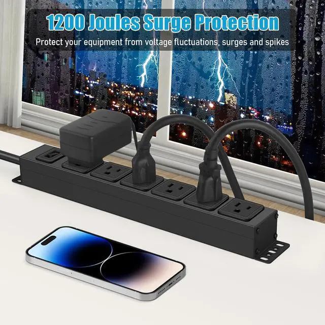 Metal Surge Protector: Multiple protection systems with 1200 joules of surge protection give you peace of mind even during severe weather such as rainstorms and lightning.