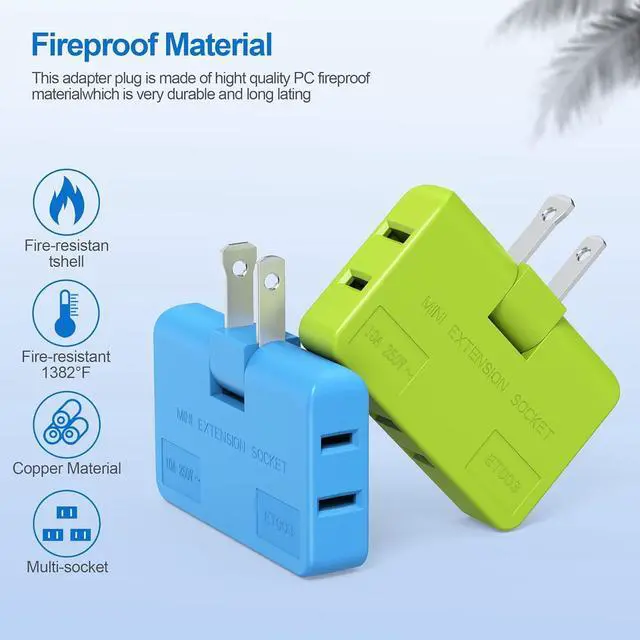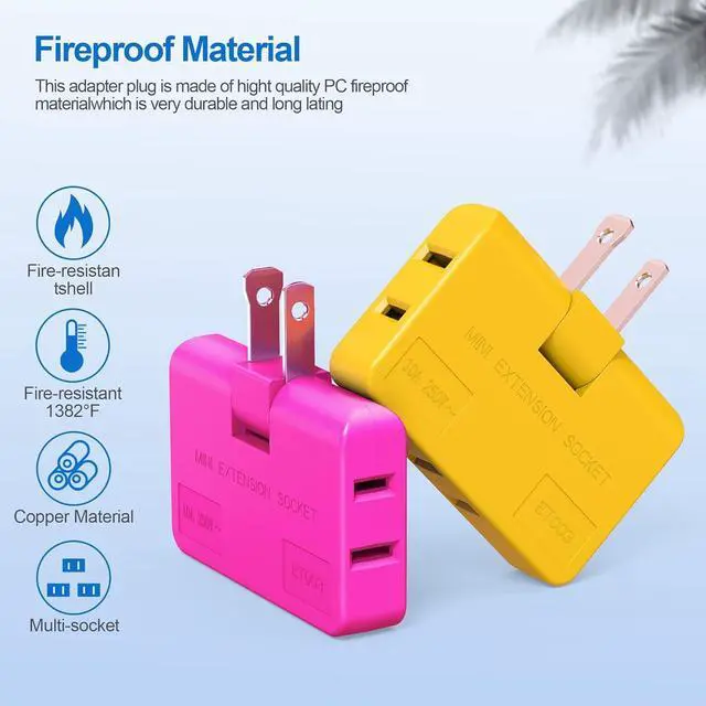 Safety Guaranteed--Fireproof and Durable: This flat outlet adapter which is made of PC flame retardant material is a perfect addition to any indoor AC plug adapter. The portable size can also be used as a sideways electrical outlet for travel in the United States or Taiwan. They can be used for personal use or as a gift to family and friends.