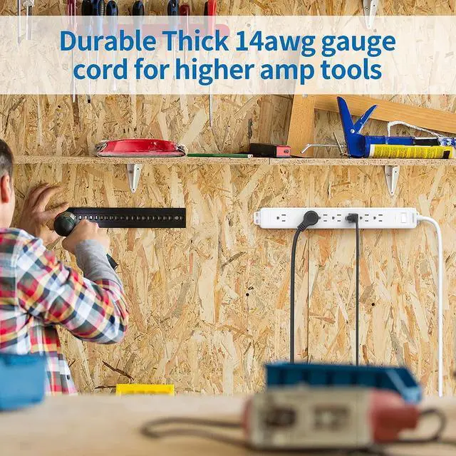 Space Saving: Wall mount long power strip has holes on the back and 4 mounting brackets on each corner for wall-mounted options, so you can install this power strip in various applications, including workbenches, desk, wallmounts, floormounts, under counters, dorm room & more, saving desktop space for you.
