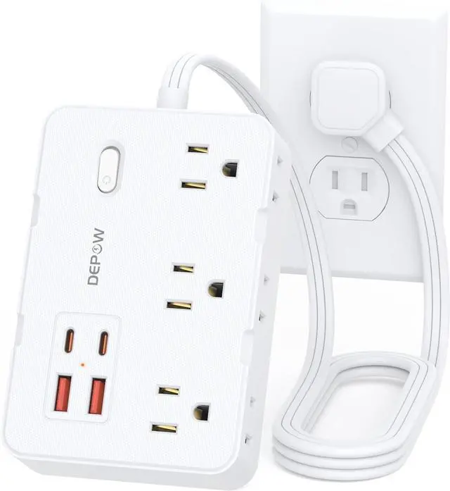 Ultra Thin Flat Plug & 3Ft Extension Cord- With only a 0.33 -inch ultra-thin plug, which is much slimmer than traditional plugs, so it' s easier to access any wall socket and hide in the back of the sofa. And a 45° right-angle design will not block the bottom receptacle of your duplex wall outlet. The 3-foot flat cable is 50% thinner than the traditional power cords to run it under a rug or along walls.