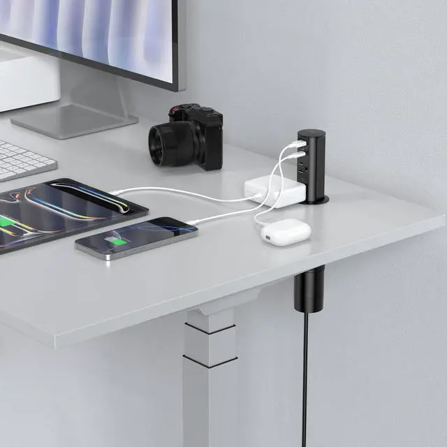 Minutes: Fits standard 2' ' holes, simply drop in and tighten; when concealed, the socket will sink to 7.3 inches beneath your countertop desk.
